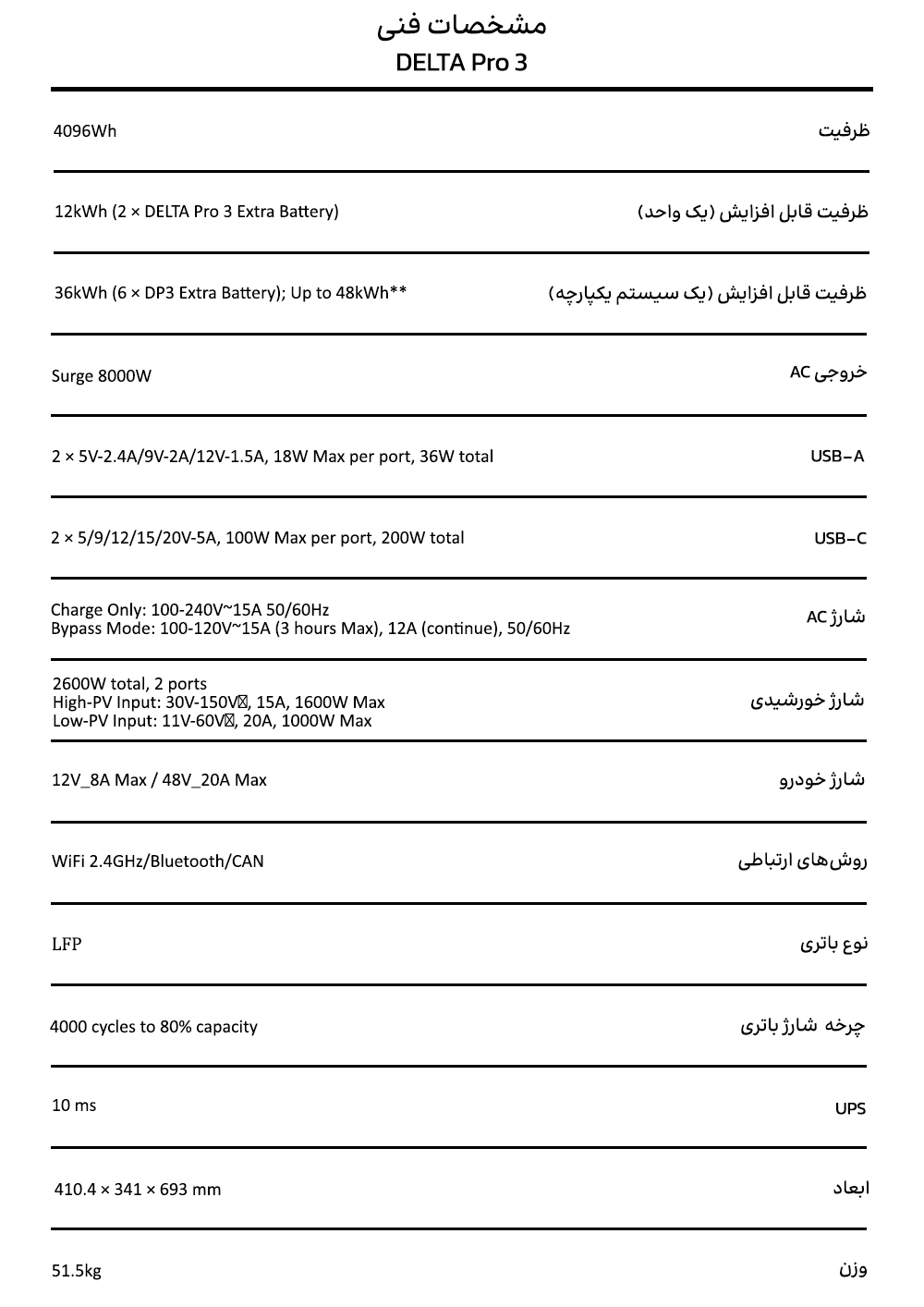 حداکثر ورودی خورشیدی که DELTA Pro 3 پشتیبانی میکند چقدر است؟